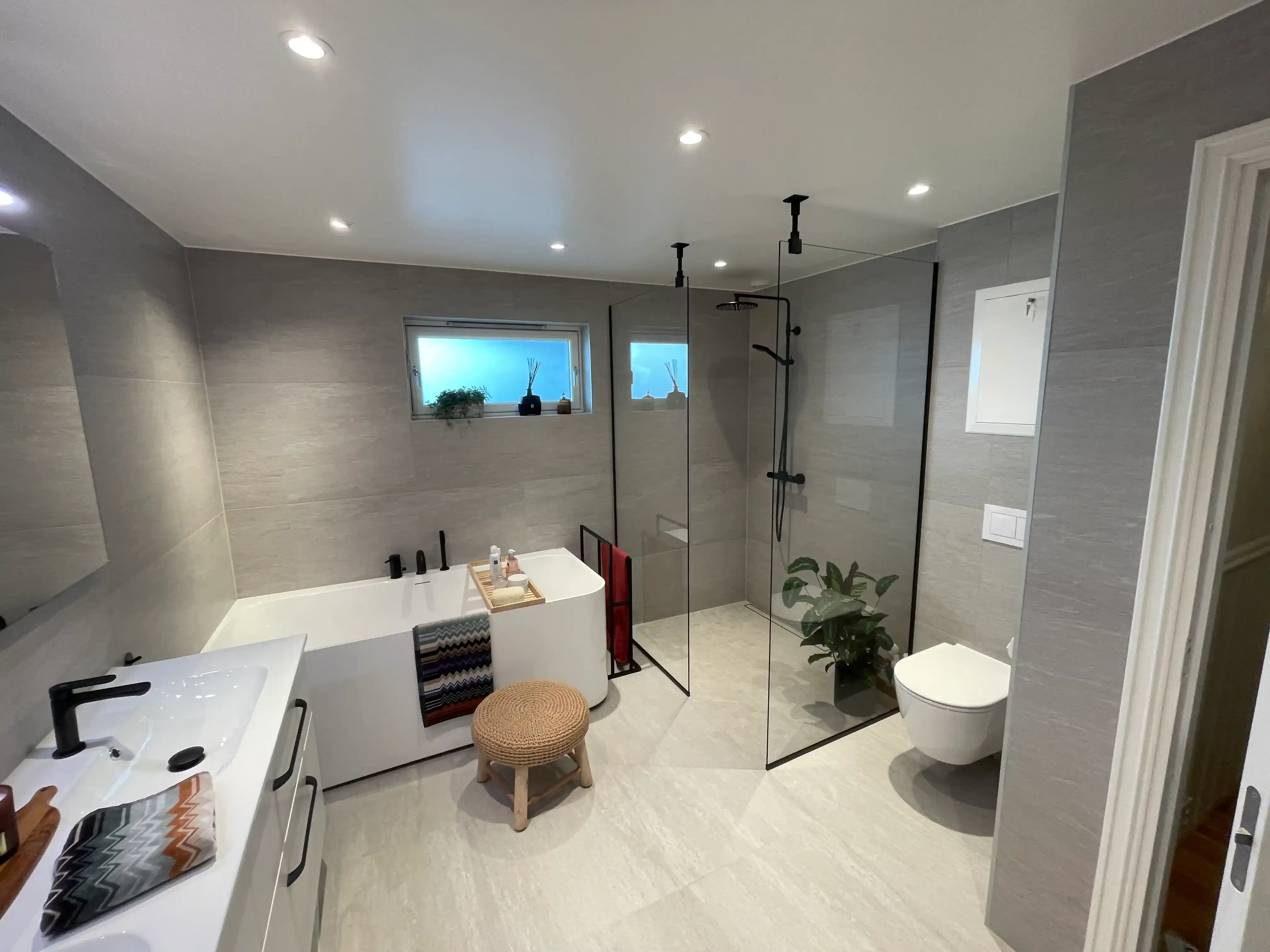 Vi bygger og rehabiliterer bad med høy faglig standard. Enten du vil totalrenovere eller oppgradere eksisterende bad, leverer vi løsninger som kombinerer funksjon, stil og kvalitet.